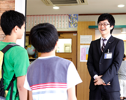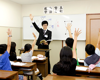 小学生授業平日の授業は70分が2時限。小学生の授業は学校では習わない部分を教えるので、全部教えきることが重要です。また、小学生は先生への苦手意識がそのまま教科の苦手につながるので、コミュニケーションを深めながら、クラス全体の雰囲気がよくなるよう楽しく分かりやすい授業を心がけます。