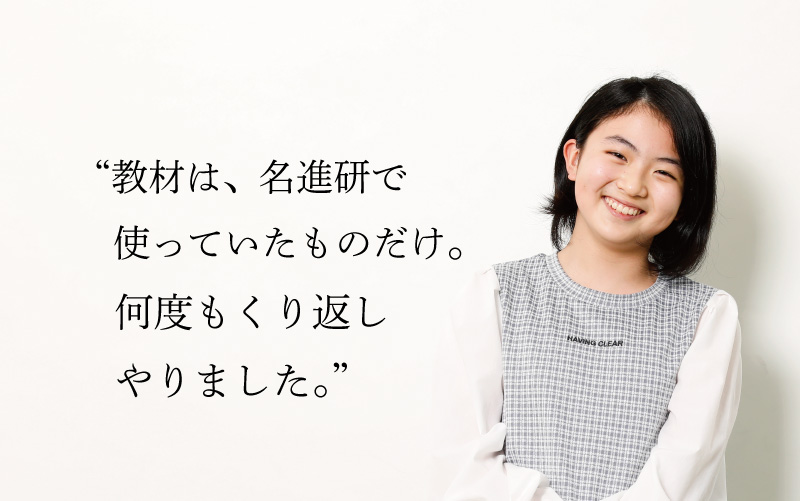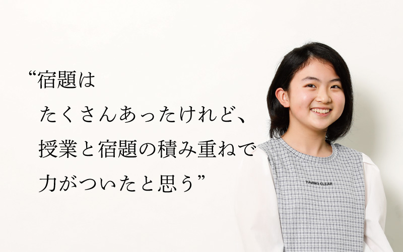 名進研に入塾した5年生の春です。生徒が先生と話し合って制服を廃止したという話を聞いて、生徒と先生の間に信頼関係がある校風がいいなと思いました。また、受験の前から勉強していた英語に力を入れている点も気に入りました。体験授業に参加したとき、「将来一人暮らしで役立つから」と調理実習でクッキーを作ったことも印象に残りました。