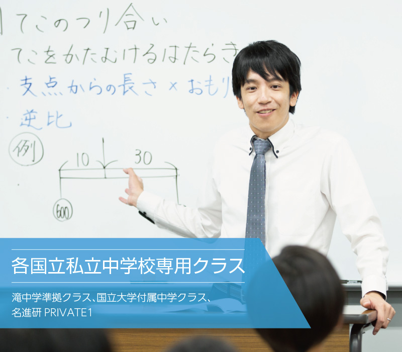 国立大学附属中学では、一般の公立中学とは異なる教育課程による指導を実施しています。名進研では愛教大附属中学生を対象に、専用クラスを設置して指導を行います。