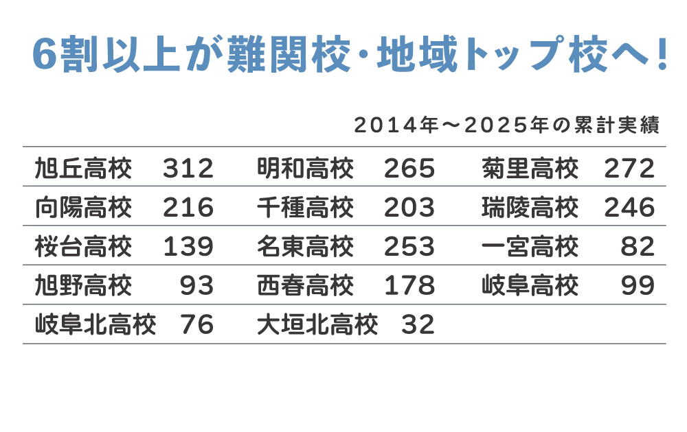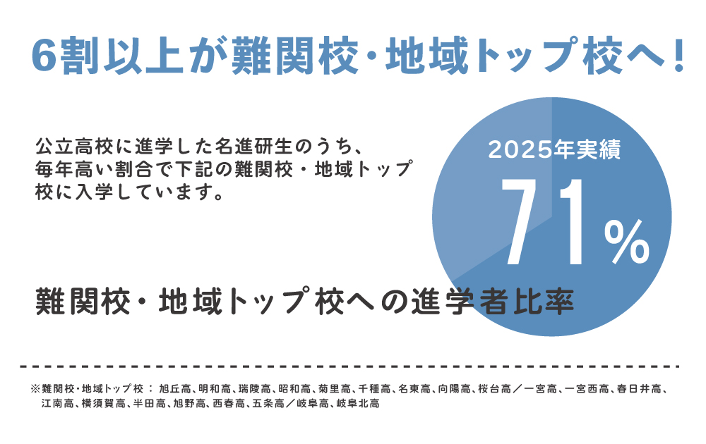公立高校に進学した名進研生のうち、毎年6割以上が難関校・地域トップ校に入学しています。