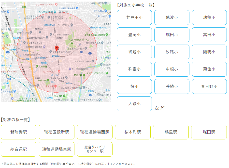 上記以外にも保護者の指定する場所(他の習い事や自宅、ご祖父母宅)にお送りすることができます。