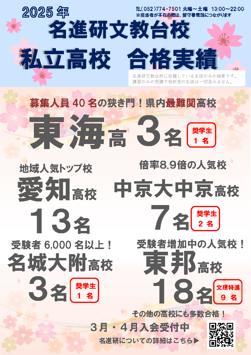 名進研文教台校のWebページをご覧いただきありがとうございます。