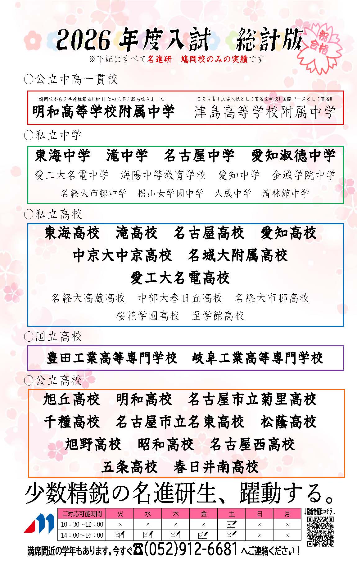 ぜひ一度、名進研鳩岡校にお越しください。教師一同、心よりお待ち申し上げます。