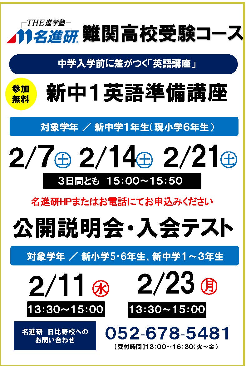 こんにちは、名進研日比野校です。