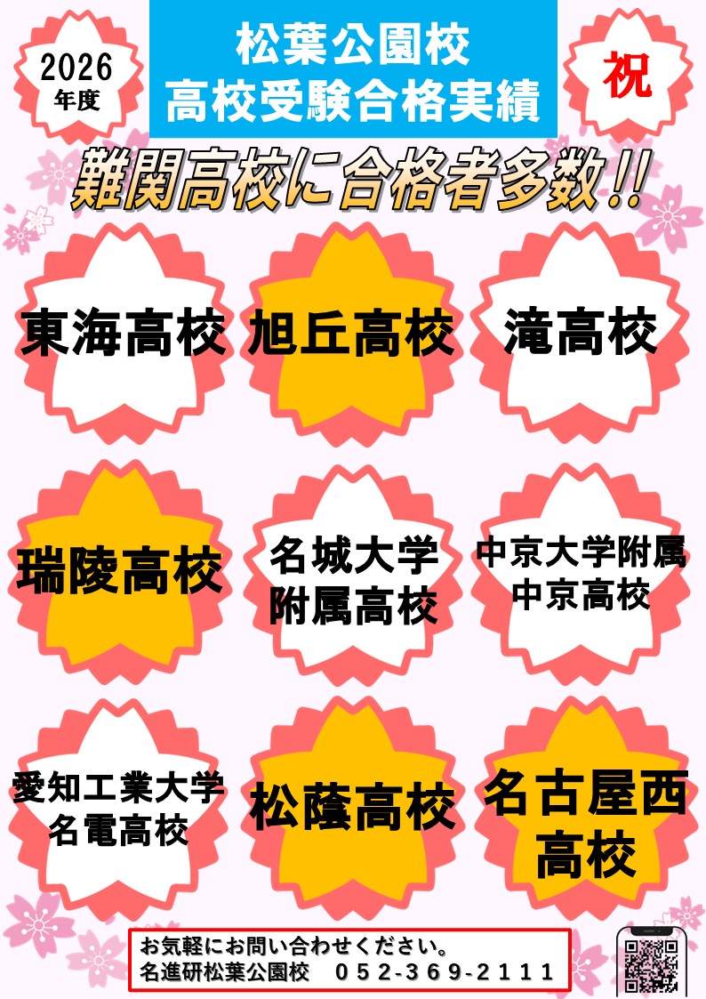 こんにちは、名進研松葉公園校です。