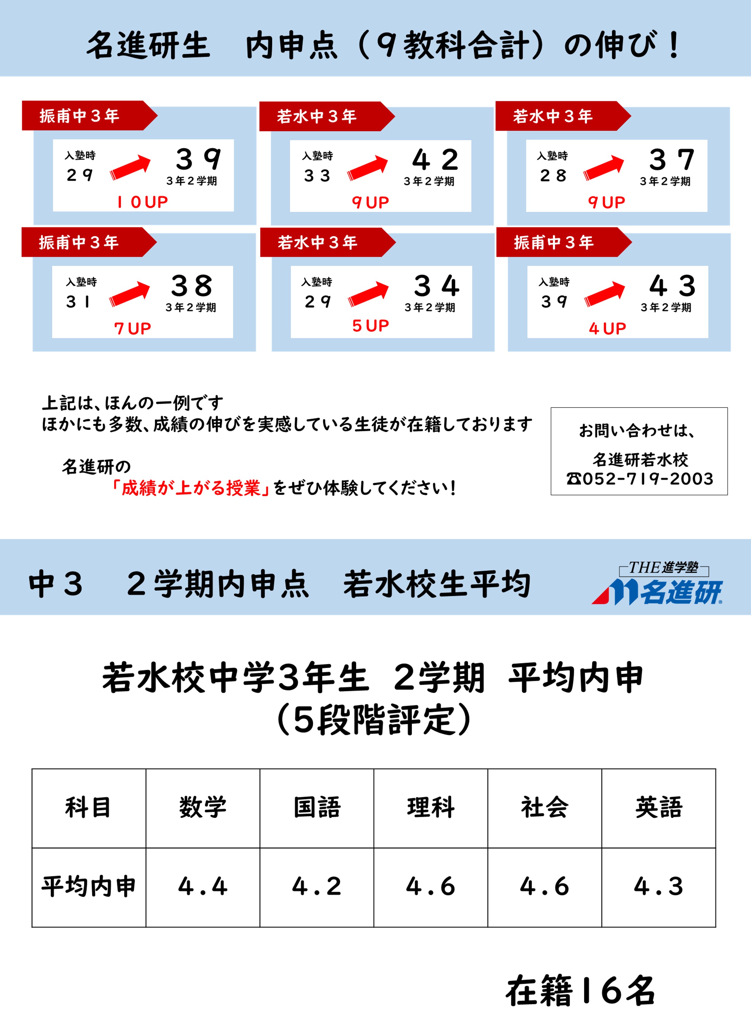 落ち着いた環境の中でお子さまの志望校合格に向けて、「名進研に通ってよかった」・「名進研に通わせてよかった」と思っていただける塾であるよう精一杯サポートさせていただきます。